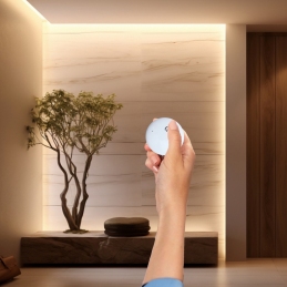 Pilot wyposażony jest w magnes, za pomocą którego można go łatwo przymocować np. do mebla, a w razie potrzeby szybko odczepić aby zdalne starowanie oświetleniem mieć przy sobie.