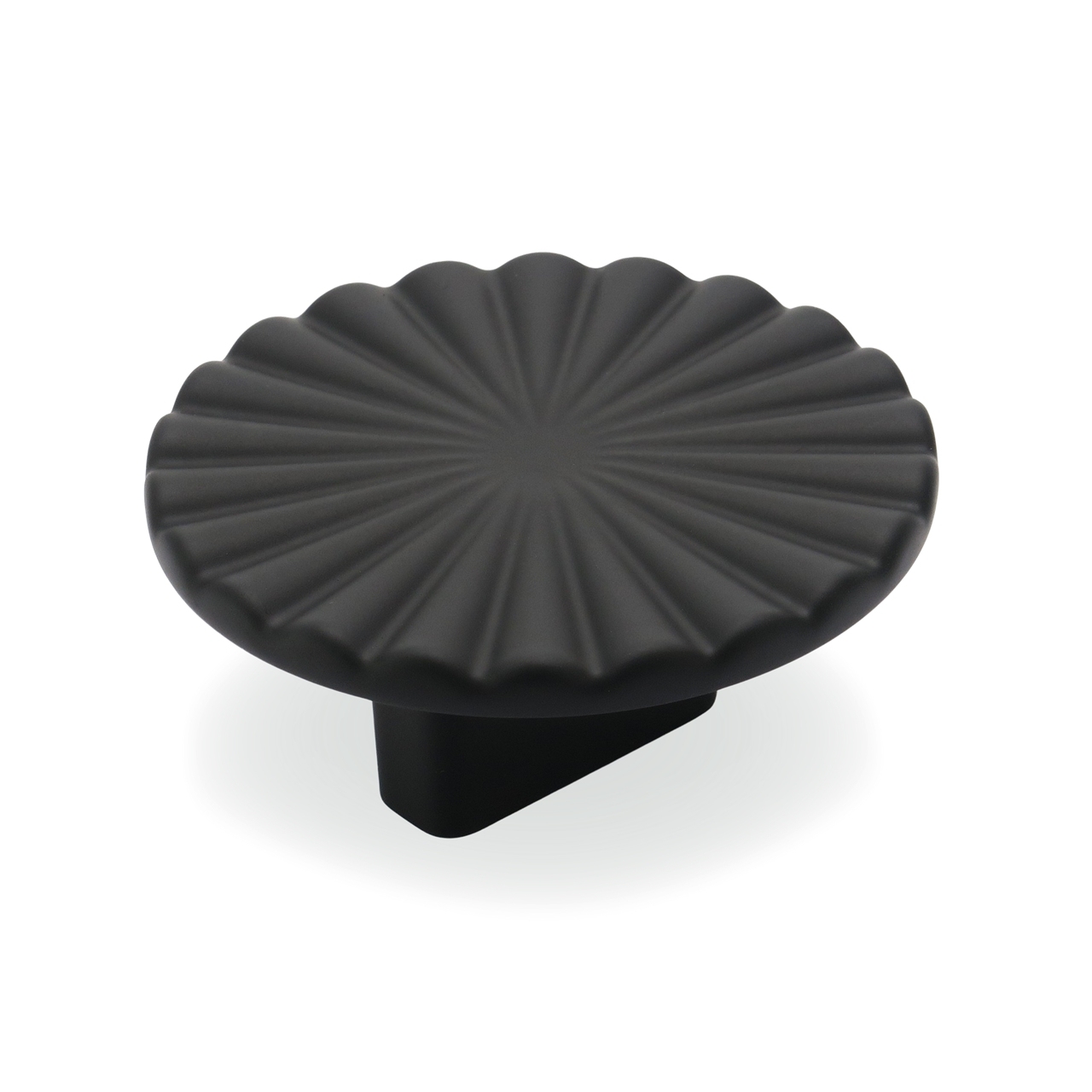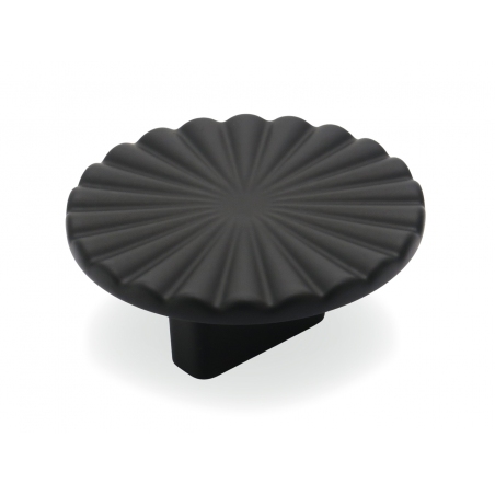 Gałka meblowa, metalowa, czarna matowa, z ozdobnymi promieniami, okrągła 50 x 23 mm,