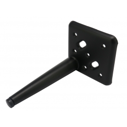 Ozdobna nóżka meblowa, wykonana z metalu, o kształcie owalnego stożka. W popularnym czarnym matowym (nakładanym proszkowo - większa trwałość). Produkt masywny o dużej trwałości. Posiada cztery punkty mocowania, co zapewnia stabilny montaż.