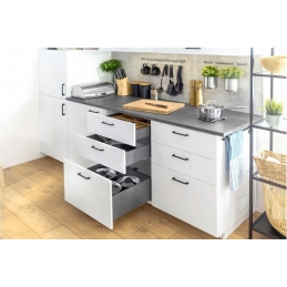 Szuflady 27- 55 cm, do mebli bez uchwytów, wysokie + 4 relingi 40 kg, białe, AMIX